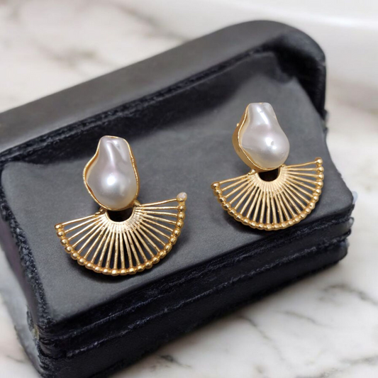 Lustre Fan Pearl Statement Earrings