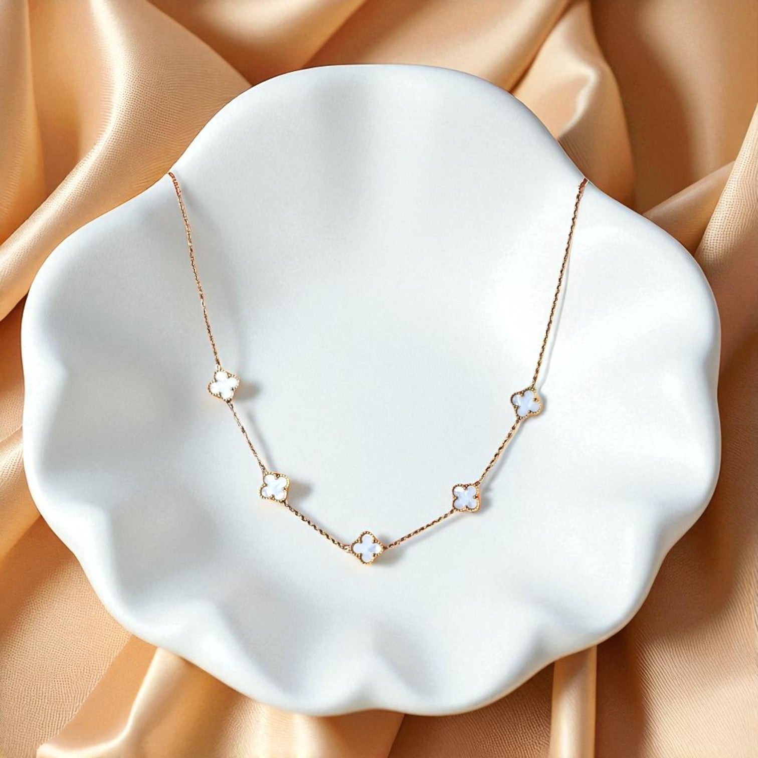 Elegant Clover Charm Necklace - White & Black Variants