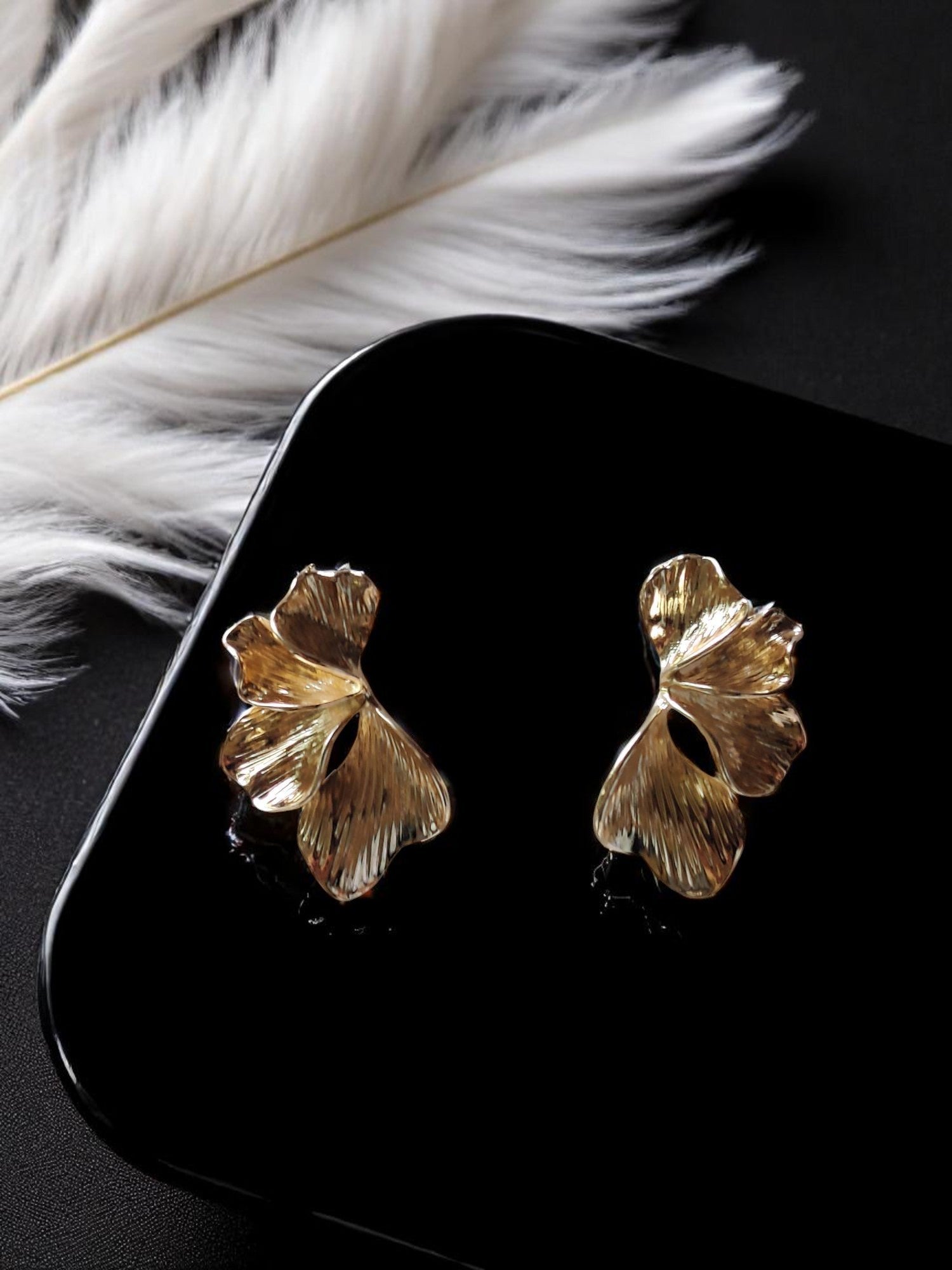Sculpted with organic grace, the Gilded Petal Statement Studs bring a touch of refined nature to your jewelry collection. Inspired by the delicate curves of flower petals, these high-shine gold-toned earrings radiate elegance with a bold silhouette. Whether you're dressing up for a formal event or adding a sophisticated twist to your daily outfit, these earrings will make a quiet yet unforgettable statement.